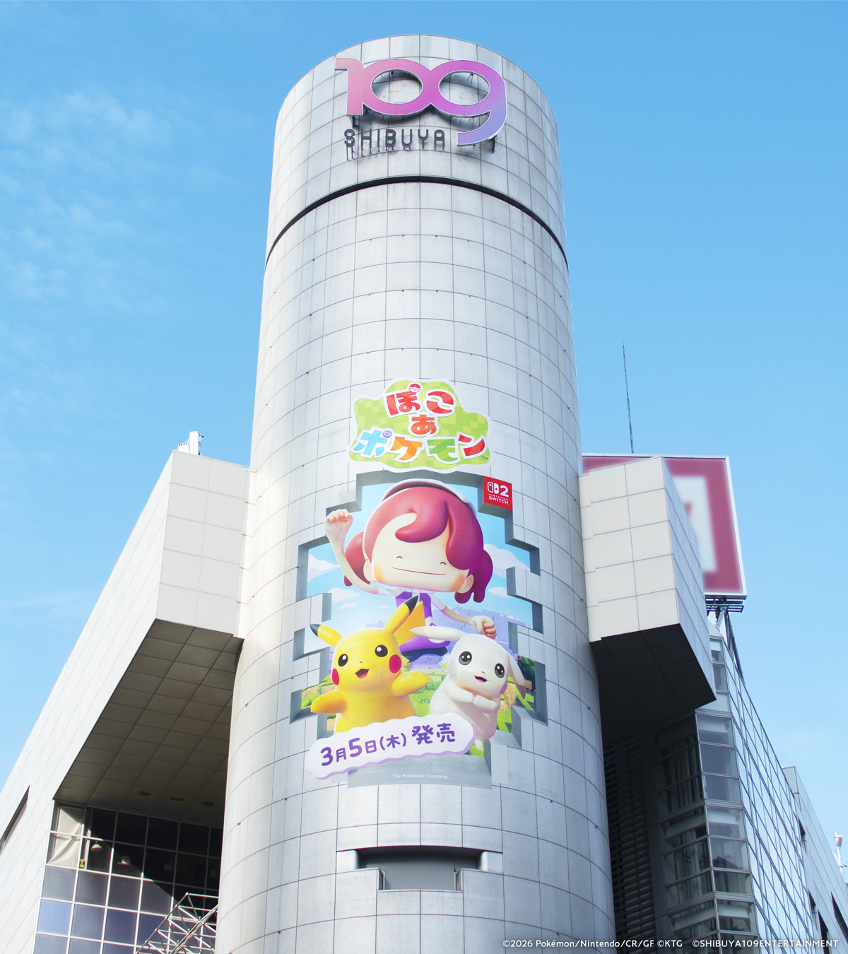 また、『ぽこ あ ポケモン』の世界観を表現したOOHを、渋谷の中心である SHIBUYA109 渋谷店 シリンダ-や